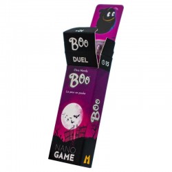 BOO est un jeu de stratégie minimaliste et intense pour 2 joueurs, accessible dès 10 ans. Dans ce duel spectral au cœur d'un cimetière hanté, placez vos fantômes avec ruse pour retourner ceux de votre adversaire à votre couleur. Un "Nano Game" au format poche qui cache un véritable défi tactique de 15 minutes, où chaque ligne de vue compte pour dominer le royaume des morts.