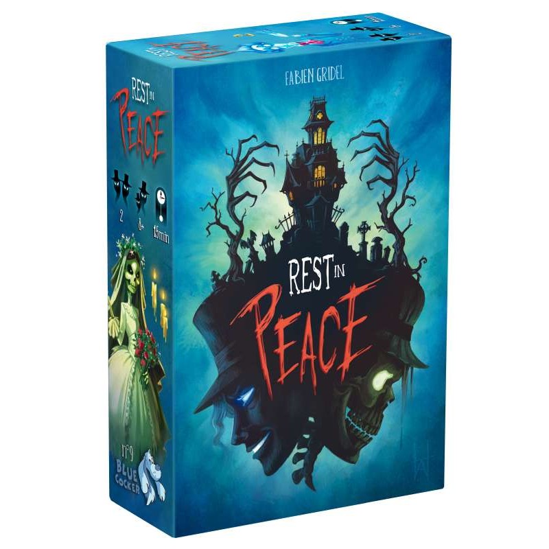 à partir de 8 ans2 joueurs15 minutesEnvoyez vos fantômes hanter les châteaux et les manoirs de vos ancêtres pour en prendre le contrôle. Mais sachez lâcher prise pour obtenir les faveurs des médiums qui vous aideront à atteindre la victoire finale. Rest In Peace (R.I.P.) est un jeu de cartes tactique pour deux joueurs. Chaque joueur a une famille de 21 fantômes (cartes de 1 à 6). À tour de rôle, chaque joueur va chercher à s’emparer de jetons Demeures en obtenant la majorité sur le lieu en jeu grâce à sa main de cartes-fantômes. Pour remporter la victoire finale, un joueur doit contrôler 3 châteaux ou 4 manoirs.