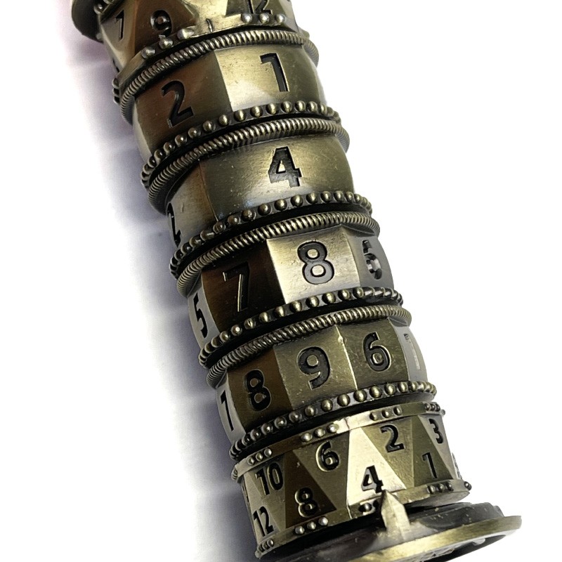 Le Dé Spinner Métal : Vieil Or Epic Forge combine élégance et ingéniosité dans un format compact. Ce cylindre rotatif intègre un set complet de dés RPG (D4 à D100) directement dans sa structure. Il suffit de faire tourner les anneaux pour obtenir vos résultats. Un accessoire original, pratique et esthétique, parfait pour remplacer les dés classiques avec style.