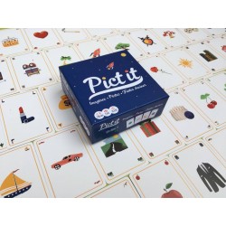 Pict it est un jeu d’ambiance composé de 102 cartes pictos et 4 cartes joker. Il se joue de 2 à 14 joueurs, seul ou en équipe. Les parties durent entre 15 et 25 minutes. Le but du jeu est de faire deviner des titres de films, séries, chansons, personnages, lieux, livres… grâce à une combinaison de 1 à 7 cartes pictos. C’est le joueur qui décide ce qu’il fait deviner en fonction des cartes qu’il a en main.