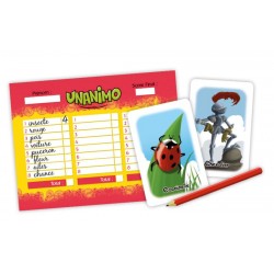 à partir de 7 ansde 3 à 12 joueurs15 minutesAu départ, une carte avec un thème est posée au milieu de la table (automne, chevalier, vacances…). À cet instant, chaque joueur inscrit sur sa feuille huit mots que lui inspire l’illustration. Laissez-vous guider par votre inspiration… Mais ATTENTION, ne soyez surtout pas originaux, car seules comptent les réponses communes avec les autres joueurs ! Plus un mot a été noté par l’ensemble des joueurs, plus il rapporte de points. Surprises garanties !