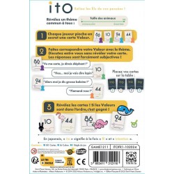à partir de 8 ansde 2 à 8 joueurs10 minutesIto est un jeu de cartes coopératif où chaque joueur associe la valeur secrète de sa carte à un idée liée à un thème commun.