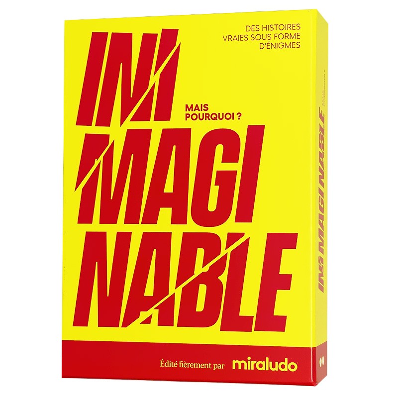 Dans Inimaginable, explorez des faits incroyables mais pourtant réels ! Chaque carte présente une énigme surprenante, et les joueurs doivent poser des questions fermées (oui/non) pour en découvrir l’explication.