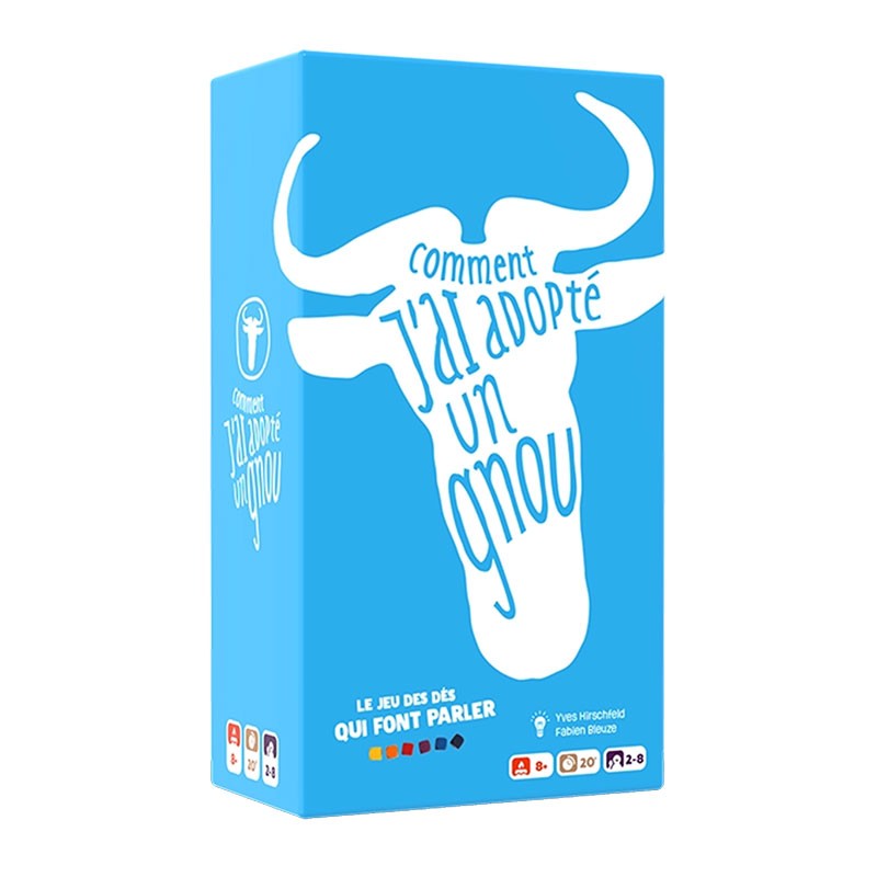 Comment j’ai adopté un gnou est un nouveau jeu de dés pour raconter des histoires incroyables, folles, croustillantes… inoubliables ! Un concept détonant, à la fois pédagogique pour les enfants et absolument délirant pour les adultes !