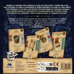 Contenu : 15 cartes Carte Classique, 3 cartes Destination Finale, 40 cartes Navigation, 45 cartes Rencontre, 1 carte Tour de jeu, 1 carte Coût de navigation, 1 carte Météo, 1 carte Événements, 1 carte Expérience, 12 cartes Campagne (A–H), 4 cartes de sauvegarde, 1 pion Bateau, 30 jetons multifonctions, 1 fiche d’améliorations Campagne.