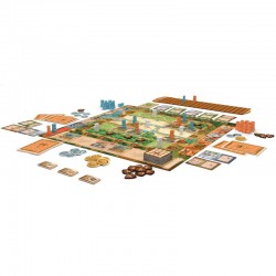 Contenu : 32 pions Lapin, 5 pions Architecte, 1 plateau Nouvelle Ville, 1 plateau de Score, 30 jetons Pièce, 16 jetons Bois, 4 jetons Pont, 30 cartes Requête, 30 tuiles Bâtiment, 16 tuiles Amélioration, 25 cartes Parcelle, 6 cartes Mise en place et 1 règle du jeu