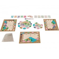 Le cœur du jeu repose sur un système de sélection original : vous choisissez une tuile parmi celles disponibles autour de deux roues, mais chaque choix modifie aussi les possibilités laissées aux autres joueurs. Cette mécanique donne au jeu une vraie dimension interactive, puisqu’il ne s’agit pas seulement de prendre la meilleure tuile pour soi, mais aussi d’anticiper ce que l’on offre à ses adversaires.