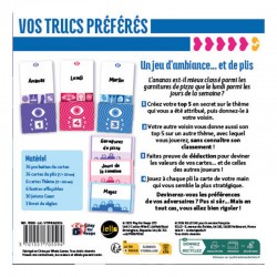Vos Trucs Préférés est un jeu de plis psychologique pour 3 à 6 joueurs dans lequel vous devrez deviner les préférences de vos adversaires pour remporter les plis.