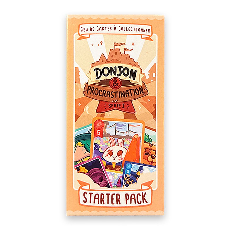 Le Starter Pack Donjon & Procrastination est conçu pour permettre à deux joueurs de se lancer immédiatement dans l’aventure. Aucun prérequis : mélangez les cartes, divisez le paquet et commencez votre duel magique.