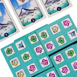 Ukiyo est un jeu tactique de 18 cartes pour 1 à 4 joueurs. Les joueurs posent les cartes horizontalement ou verticalement pour créer des motifs de symboles dans une grille de 6x6.