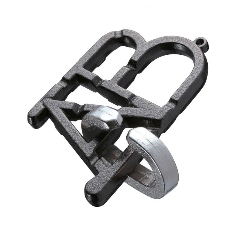 Un casse-tête qui consiste à enlever la lettre C de l'emboîtement avec les lettres A et B. Prenez le mauvais chemin et vous vous retrouverez dans une impasse. Originaire d'une pièce créée en Angleterre en 1911, ce petit bijou a une longue histoire. C'est parfait pour tous ceux qui commencent sur le chemin d'un casse-tête.