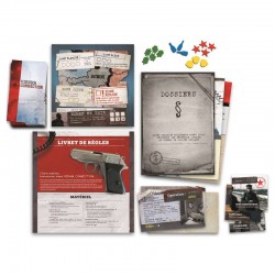 Contenu : 1 paquet de cartes Pistes, 100 pages de Dossiers, 4 enveloppes avec du matériel spécifique à chaque mission, 15 jetons en bois, 8 feuilles de mission et 1 Règle du jeu.