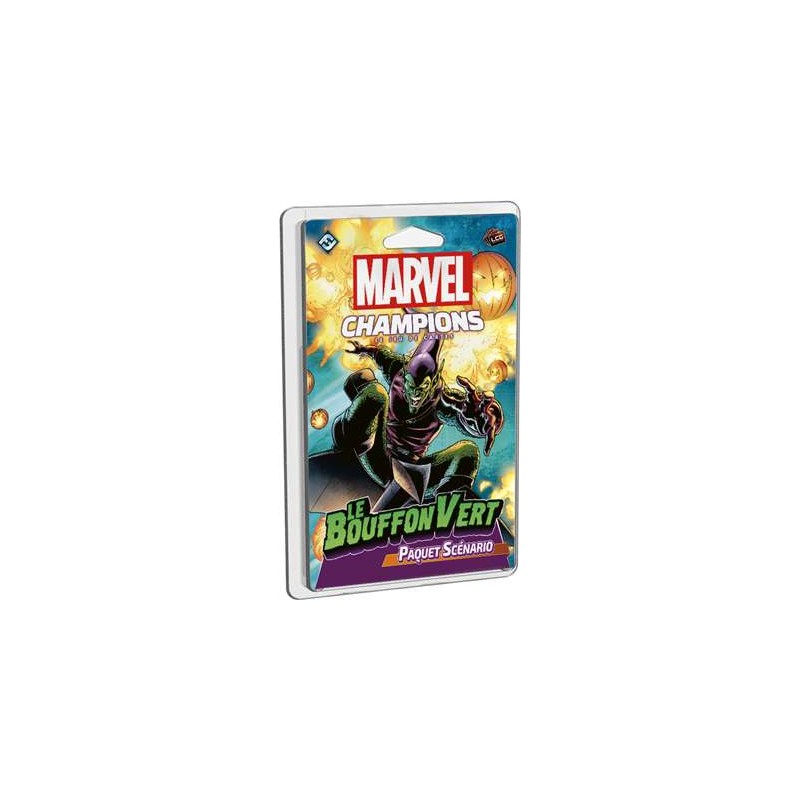 Le Bouffon Vert est une extension de 78 nouvelles cartes pour Marvel Champions : Le Jeu de Cartes qui comprend deux scénarios et quatre sets de rencontre modulaires. Sauvez New York du Bouffon Vert et de son armée de bouffons !