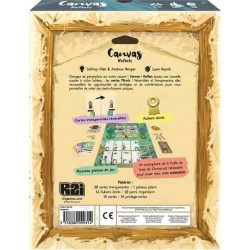 Canvas : Reflets ajoute une nouvelle couche à votre tableau : les cartes Miroir. Réversibles et transparentes, elles renouvellent les opportunités de stratégies et proposent une plus grande flexibilité dans la combinaison des Éléments. Le nouveau plateau offre également un choix plus vaste de cartes Art (même si vous manquez de pions Inspiration), ce que vous permet de mieux anticiper la suite de la partie.
