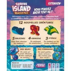 Survive The Island : Monster Pack contient trois nouveaux monstres : le ptérodactyle, qui peut vous soulever du sol et vous laisser bloqué loin de toute sécurité ; la baleine crée le chaos en renversant les bateaux, vous obligeant à repenser votre stratégie de fuite ; et la pieuvre imprévisible peut attraper les joueurs quand ils s'y attendent le moins, rendant la course pour s'échapper encore plus délicate.