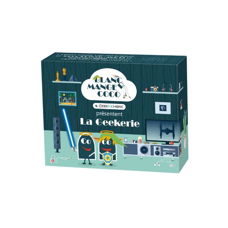 à partir de 16 ans3 à 12 joueurs30 minutesL'irrévérence Blanc-Manger Coco s'attaque désormais à l'univers des passionnés de l'imaginaire et de la culture digitale. Vous aimez la saga Marvel et les câlins avec notre ami Pedobear, les enchaînements de "0" et de "1" vous font penser à de la poésie plus qu'à de l'arithmétique : la Geekerie est faite pour vous ! Mélanger les cartes ou pas avec les autres jeux de la gamme : à vous de décider.