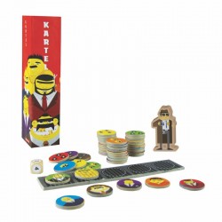 But du jeu : Les jours du cartel sont comptés. Choisis bien ton camps, arrête les hommes de mains ou empoche les pots-de-vins :-) Attention les scores s'inversent si le chef de gang ne finit pas sous les barreaux... Les joueurs font avancer le détective à tour de rôle en lançant le dé. A chaque lancer, l'étau se resserre. Kartel est un jeu vif, tendu et ultra compétitif !