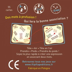 à partir de 8 ansde 2 et 8 joueurs10 minutesCréer une expression du langage courant, un titre de film ou de chanson, un mot composé… à partir des mots visibles sur chacune des cartes.
