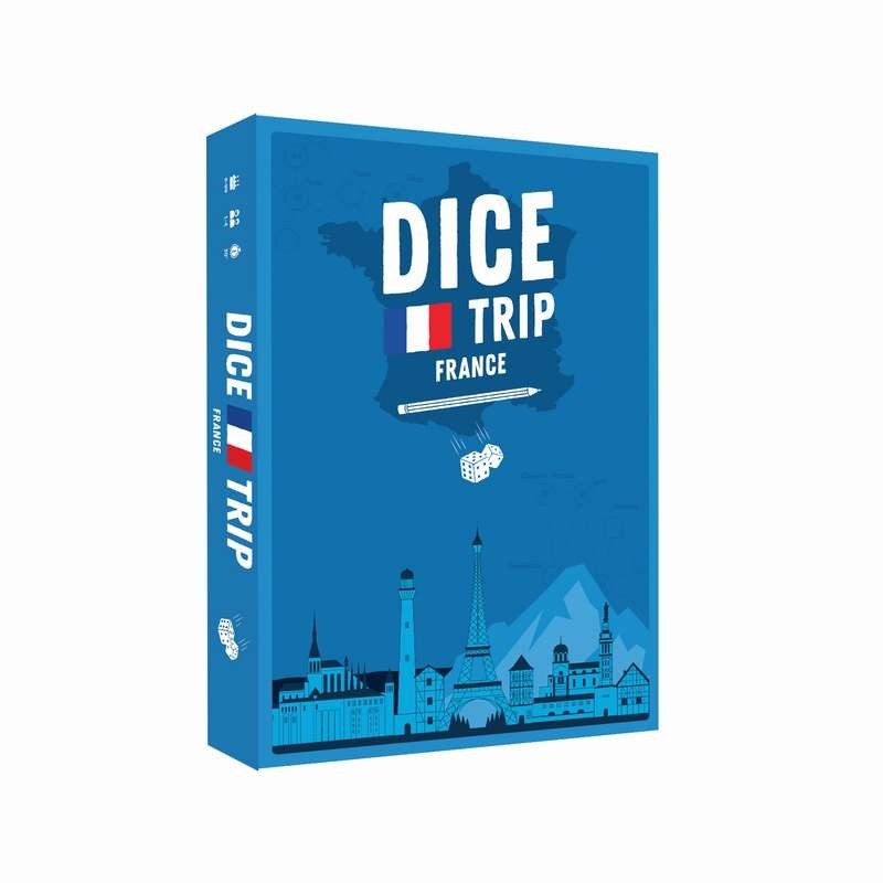 Vaut-il mieux éviter Paris ou rayer Orléans de la carte ? Dans Dice Trip, le choix ne dépendra pas des choses à voir dans la ville, mais du résultat de vos lancers de dés. Commencez votre voyage et combinez au mieux les dés pour créer la plus longue route possible à travers la France. Comme lors d'un départ en voyage, observation, planification et réflexion seront vos meilleurs alliés dans ce roll and write au design soigné.