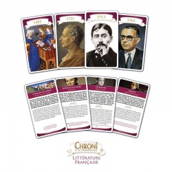 Chroni - Littérature française est un jeu d'apprentissage avec auquel on s'amuse à mémoriser progressivement et durablement des repères chronologiques. Idéal pour les curieux qui souhaitent découvrir ou redécouvrir les grands auteurs français ou les amateurs qui veulent consolider leurs connaissances.