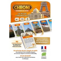 Chacun son tour, un joueur tente de situer une de ses cartes dans la frise chronologique. Le premier à ne plus avoir de carte dans sa main remporte la partie. Mais attention si on se trompe, on pioche. De la connaissance, de la déduction mais aussi un peu de chance permettent de gagner. Mais la mécanique est basée sur l'apprentissage par l'erreur. "Je ne perds jamais. Soit je gagne, soit j'apprends" -Nelson Mandela Chroni est un jeu instructif et évolutif avec toute une collection de thèmes à mélanger.