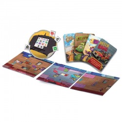 Contenu : 4 manettes-taquin, 8 Bolides (tuiles et pions), 6 plateaux Circuit, 25 jetons (4 Sourires, 13 Piles, 1 Glissade, 7 Boucliers d'énergie) et 1 Règle du jeu.