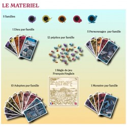 à partir de 14 ansde 2 à 5 joueursde 45 à 60 minutesL’objectif : convertir un maximum d’adeptes à votre cause. Vous jouerez vos 16 cartes, regroupant différents personnages, adeptes et monstres. La particularité par rapport à d’autres jeux de cartes à plis se trouve au niveau de l’atout. En effet, celui-ci est de la couleur de celui qui engage le pli, une mécanique originale qui demandera un temps d’adaptation mais qui vous amènera à une stratégie particulière pour accéder au trône Ultime !