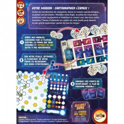 Contenu : 1 plateau Tableau de bord, 10 tuiles Exploration, 10 tuiles Optimisation, 5 tuiles Module, 1 bloc de feuilles Cosmos, 4 crayons, 11 gabarits de forme et 1 livret de règles.
