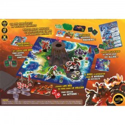 Contenu : 5 fiches de Monstre, 1 plateau Monster Island, 1 compteur Boss, 1 Volcan en 3D, 10 dés Monstre, 10 dé Boss, 54 cartes Énergie, 12 cartes Évènement, Cubes et Jetons Énergie, 8 figurines cartonnées, 6 fiches Alliés, 3 fiches Boss, 30 jetons Minion, 8 Flammèches, 12 jetons Cristal et 3 Pylônes, 12 tuiles Soutien, 1 Sac en Tissu et 1 livret de règles.
