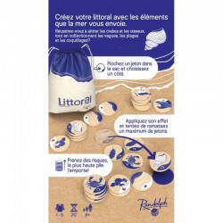 Dans ce jeu, les participants sont invités à récupérer des éléments que la mer apporte sur la plage pour créer la plus grande pile d’éléments possible. Avec des règles simples, Littoral promet des parties rapides et intenses, où chaque joueur doit piocher des jetons dans un sac et décider de leur placement pour maximiser leurs points. Le jeu se distingue par son aspect éducatif, mettant en avant la beauté et la fragilité de la nature côtière.