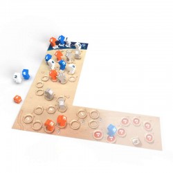 Contenu : 1 boîte-plateau, 1 dé, 23 pions (5 pions numérotés de 1 à 5 de quatre couleursdifférentes + 3 pions noirs pour l’extension Astronautes Mercenaires) et 1 livret de règles.