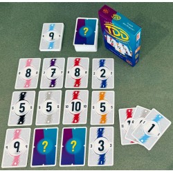 à partir de 8 ansde 2 à 5 joueurs20 minutesDans TDD (Tout Doit Disparaître), chaque joueur commence avec une grille de 9 cartes face cachée. À votre tour, piochez et jouez une carte parmi les trois que vous avez en main, ou bien échangez deux cartes voisines pour révéler de nouvelles possibilités. Votre objectif ? Faire disparaître votre tableau en entier !