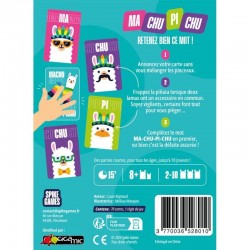 Mais ce n'est pas tout ! Lorsque vous retournez une carte, annoncez le mot écrit dessus. Si une séquence MA-CHU-PI se forme, frappez immédiatement la piñata en criant "CHU" pour terminer le mot. Le dernier récupère toutes les cartes des autres...