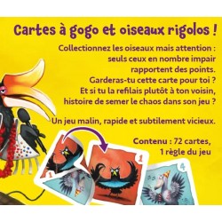 Marquez le plus de points en collectant le plus de "drôles d'oiseaux" possible. Toutefois, le système de points est aussi insolite que les oiseaux eux-mêmes : chaque oiseau ne rapporte des points que s'il se trouve en un nombre impair devant vous à la fin de la partie !