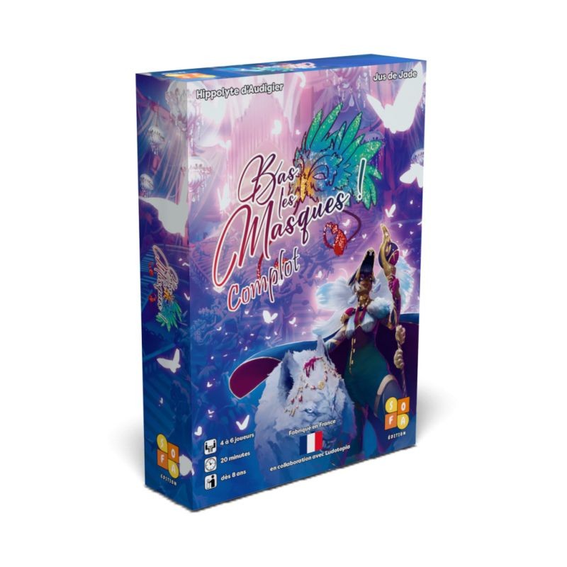 Bas les masques ! Complot est le 2ème volet du jeu Bas les masques ! Royauté. De nouveaux personnages, de nouveaux masques et encore plus de coups fourrés à prévoir.