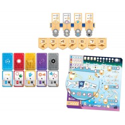 1 bloc de 100 feuilles de jeu - 7 tuiles Espèce recto-verso - 12 tuiles Objectif recto-verso - 8 jetons Découverte - 75 cartes Action - 1 plateau d’Objectifs recto-verso - 1 règle - Bonus : 2 tuiles Objectif pour Demeter