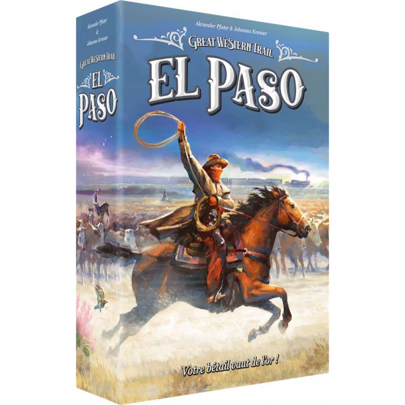 à partir de 12 ansde 1 à 4 joueursde 60 à 90 minutesGreat Western Trail : El Paso transporte les joueurs à la fin du XIXᵉ siècle, où El Paso est devenu un carrefour majeur du commerce bovin, relié par cinq compagnies ferroviaires. En tant qu'éleveurs ambitieux, les joueurs doivent acheminer leur meilleur bétail vers la ville pour gagner de l'argent et des points de victoire. Pour atteindre leurs objectifs, ils peuvent acheter du bétail pour augmenter la valeur de leur troupeau, construire des bâtiments pour débloquer de nouvelles actions et participer à l'expansion du réseau ferroviaire pour sécuriser les contrats les plus lucratifs.