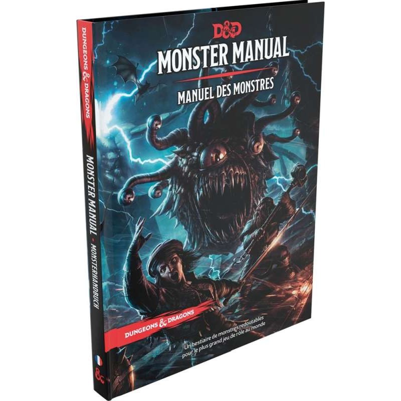 Le Monster Manual® vous propose des hordes de créatures, toutes de grands classiques de Dungeons & Dragons®, dont des géants, des flagelleurs mentaux, des dragons et des tyrannoeils, un véritable vivier pour les maîtres du donjon désireux de peupler leurs aventures et de défier leurs joueurs. Les monstres de cet ouvrage proviennent de l’illustre histoire de la gamme Dungeons & Dragons® et s’accompagnent de profils faciles à utiliser et d’histoires passionnantes pour alimenter votre imagination.