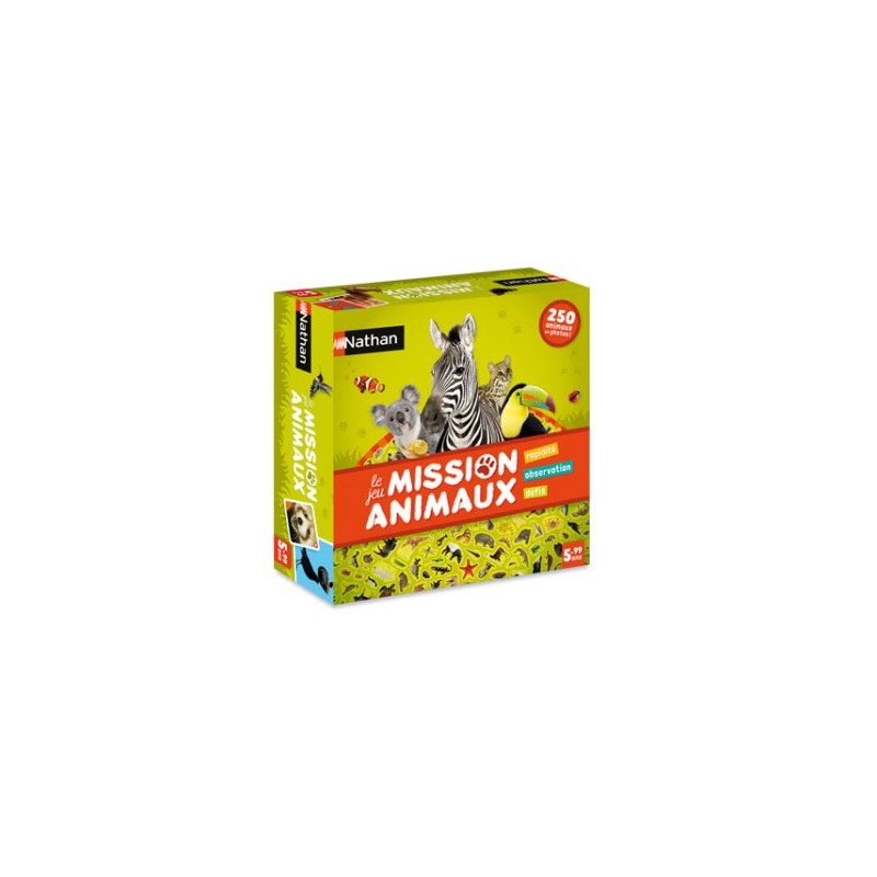 Un jeu d’observation, de rapidité et d’énigmes avec des photos pour découvrir 250 animaux. Chacun à son tour, les joueurs tirent une carte : le premier qui trouve l’animal correspondant sur le plateau gagne la carte. C'est une carte Mission Solo ? Top ! Le joueur a 1 minute pour trouver le maximum d'animaux.