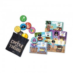 Tu viens de trouver un super coffre rempli de trésors ! Collectionne un maximum de pièces pour gagner la partie, mais attention aux autres pirates qui désirent le même butin que toi ! Un jeu de chance et de tactique dès 4 ans. Contient : un sac en tissu, 36 pièces, 5 planches-pirates.