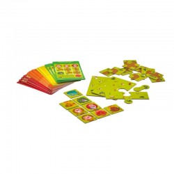 à partir de 5 ans1 joueur10 minutesContenu : 60 cartes Défi (avec la solution au dos), 3 plateaux de jeu (assemblables), 20 tuiles : 3 cochons, 3 maisons, 12 chemins, 1 loup, 1 lac