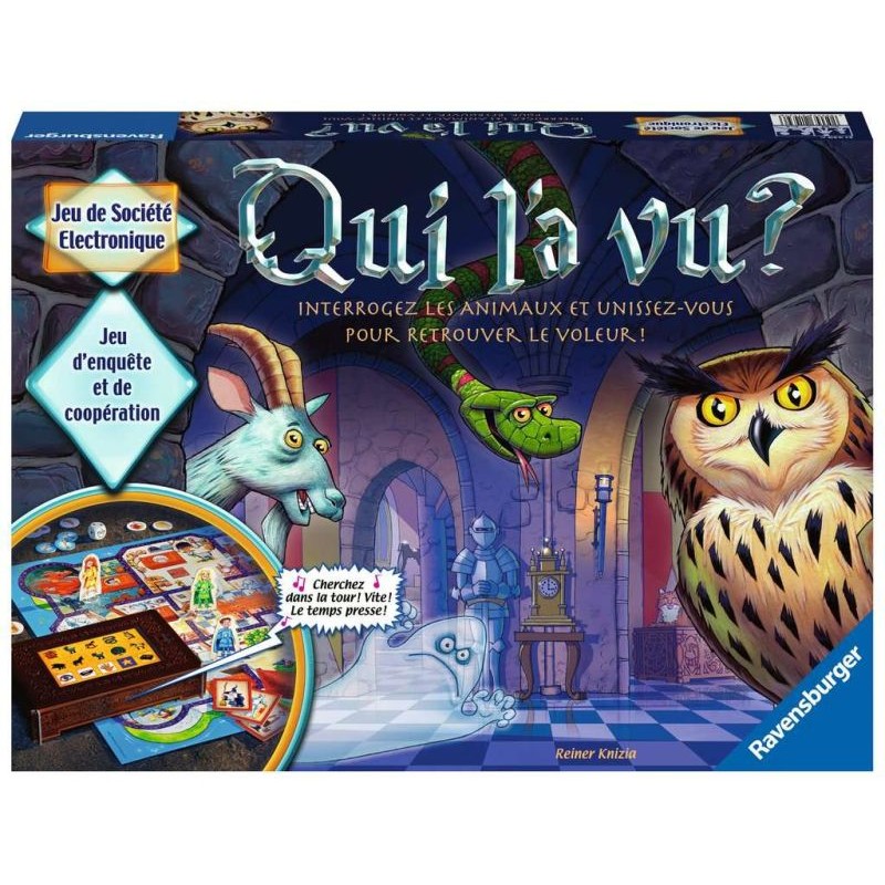 à partir de 6 ansde 2 à 4 joueursde 30 à 45 minutesJeu d'enquête coopératif. Une grande agitation règne au château : la bague magique du roi a été volée ! Cette bague est la seule à pouvoir protéger le royaume du méchant sorcier ! Les animaux du château ont vu le voleur, mais seuls les enfants comprennent la langue des animaux. Hey, les enfants c'est à vous de jouer ! Unissez-vous et avancez ensemble, car c'est le seul moyen de retrouver le voleur !Parcourez les pièces, parlez avec les animaux et récoltez un maximum d'indices pour retrouver la bague magique avant l'arrivée du méchant sorcier ! Des parties toujours différentes grâce au coffre magique interactif. Dès 6 ans.